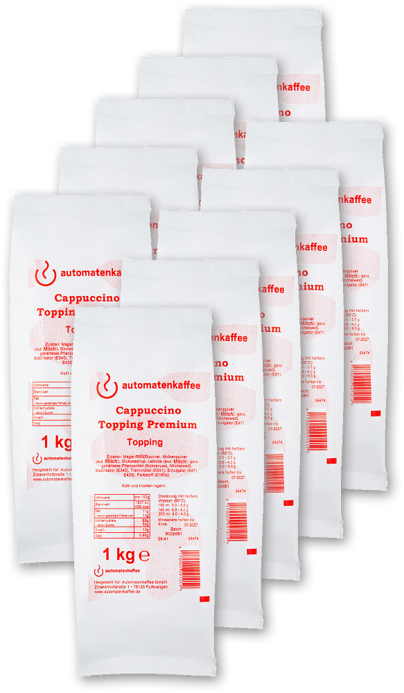 Cappuccino Topping Premium sorgt für eine voluminöse und stabile Schaumkrone und überzeugt mit guter Rieselfähigkeit in zuverlässiger Automatenqualität.